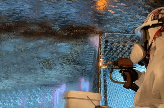 この種の作業を実施するには、一つのシフトが溶接を行う間、同じエリアで別のシフトが研磨作業を実施するという並行作業が欠かせませんでした。研磨完了後は他の作業が行われなかったため、通常とは全く違って、静かで平穏な環境下で単独での作業を行うことができました。単独での施工作業は相当な肉体的労力を要しただけでなく、作業の複雑さもありましたが、独力で作業を完遂する献身性が光りました。